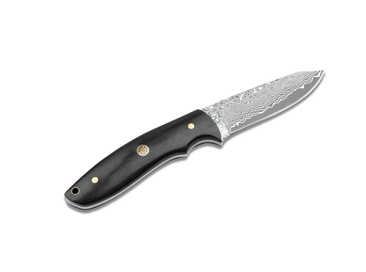 Das Magnum Vernery Damast steht für exklusive Handwerkskunst und pure Leidenschaft. Die elegante Droppoint-Klinge aus 67 Lagen Damaststahl im Two-Tone-Design überzeugt mit höchster Schneidleistung und einem faszinierenden Muster. Griffschalen aus edlem Ebenholz verbinden natürliche Schönheit mit ergonomischer Form und sicheren Halt. Die Vollerlbauweise garantiert Stabilität auch bei anspruchsvollen Einsätzen beim Camping, Bushcrafting oder der Jagd.