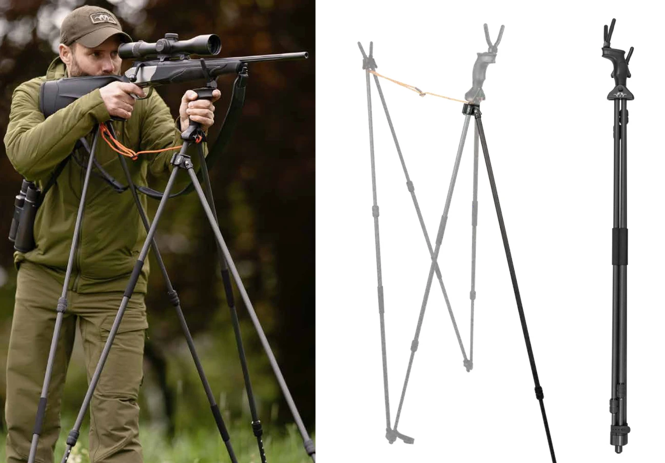 Durch die schwenkbare Gabel, in der der Vorderschaft ruht, kann auf ziehendes Wild mitgefahren werden. Ein entscheidender Vorteil bei der Pirsch, auf der es schnell zu unvorhersehbaren Situationen kommen kann.